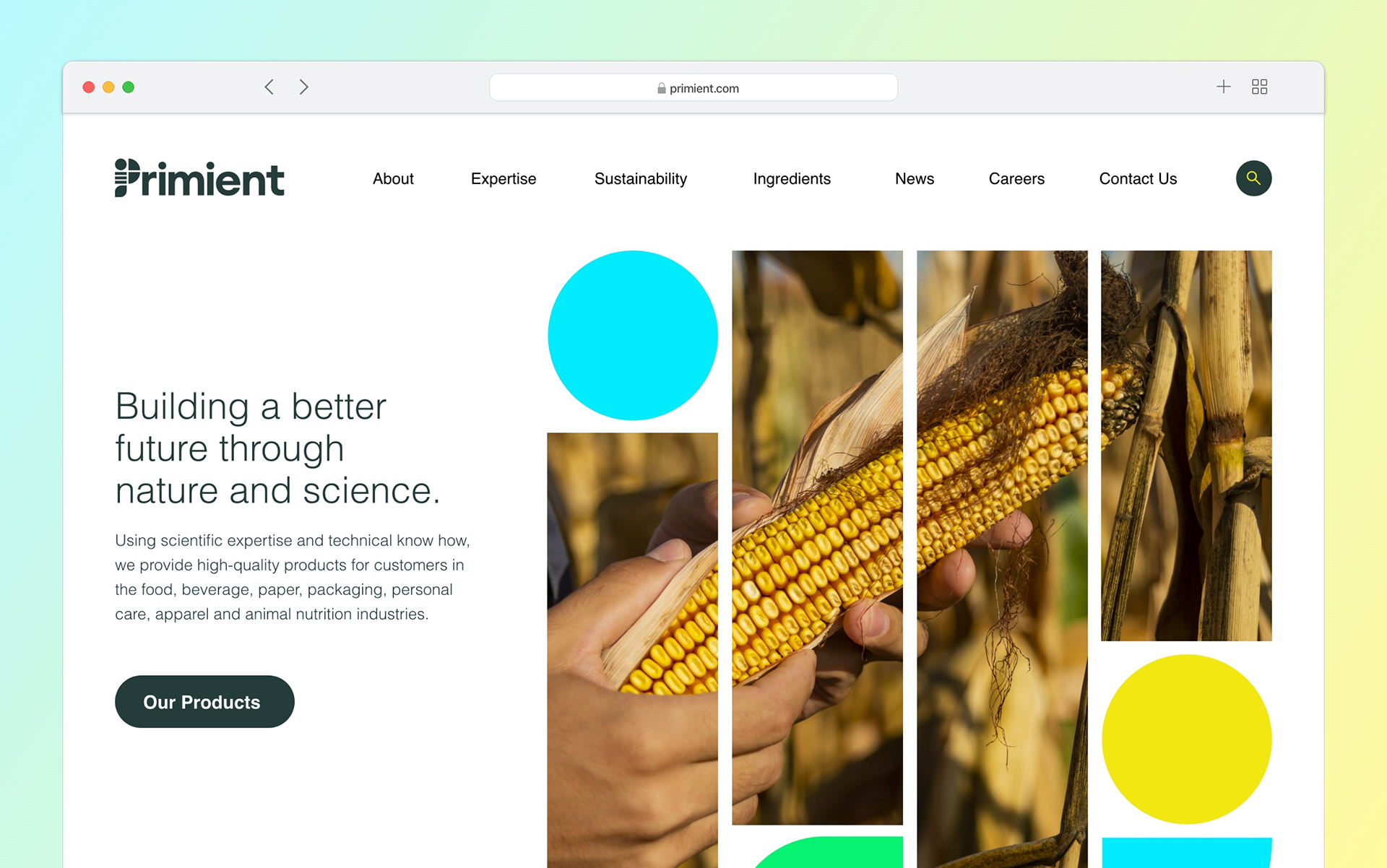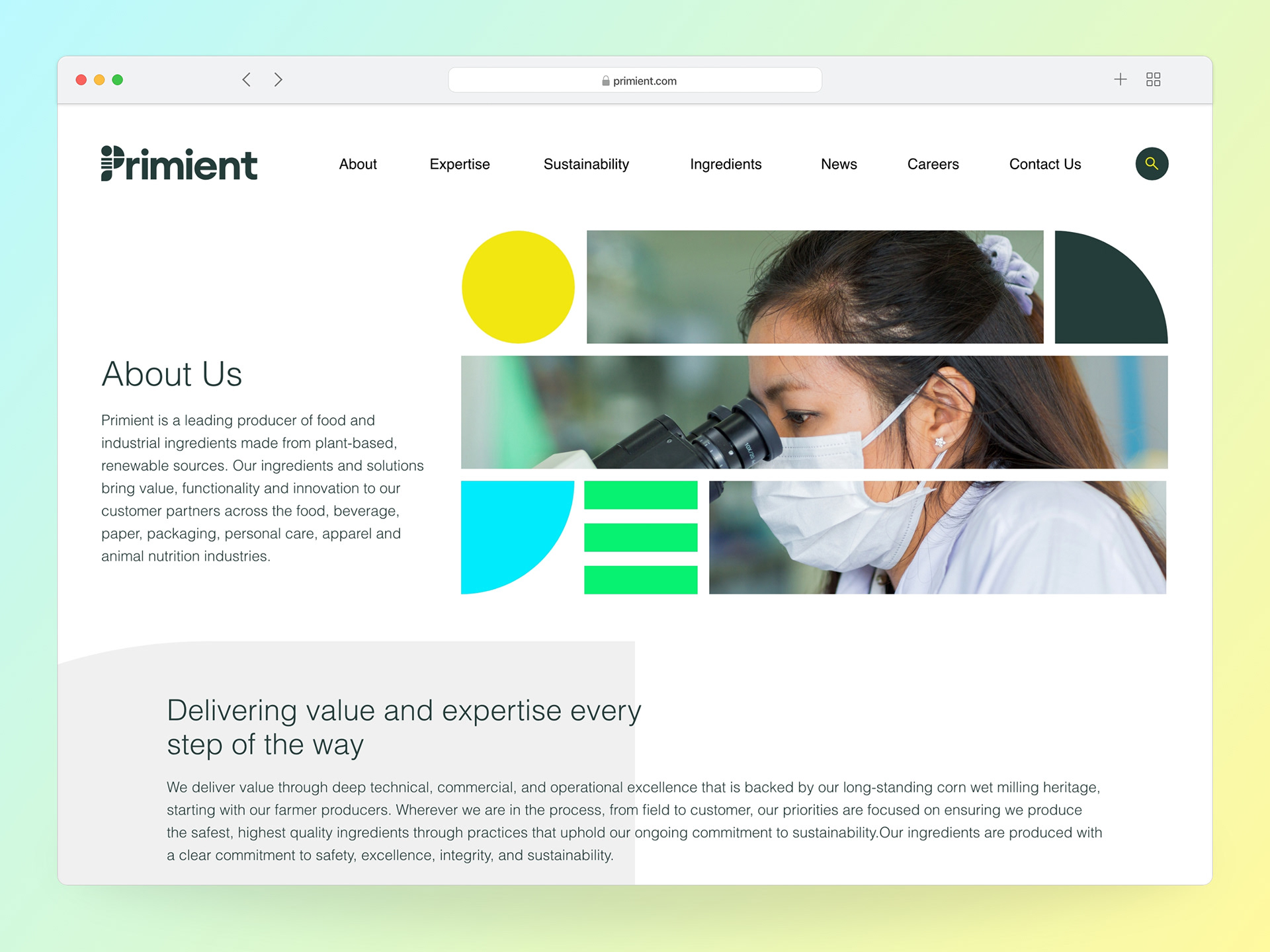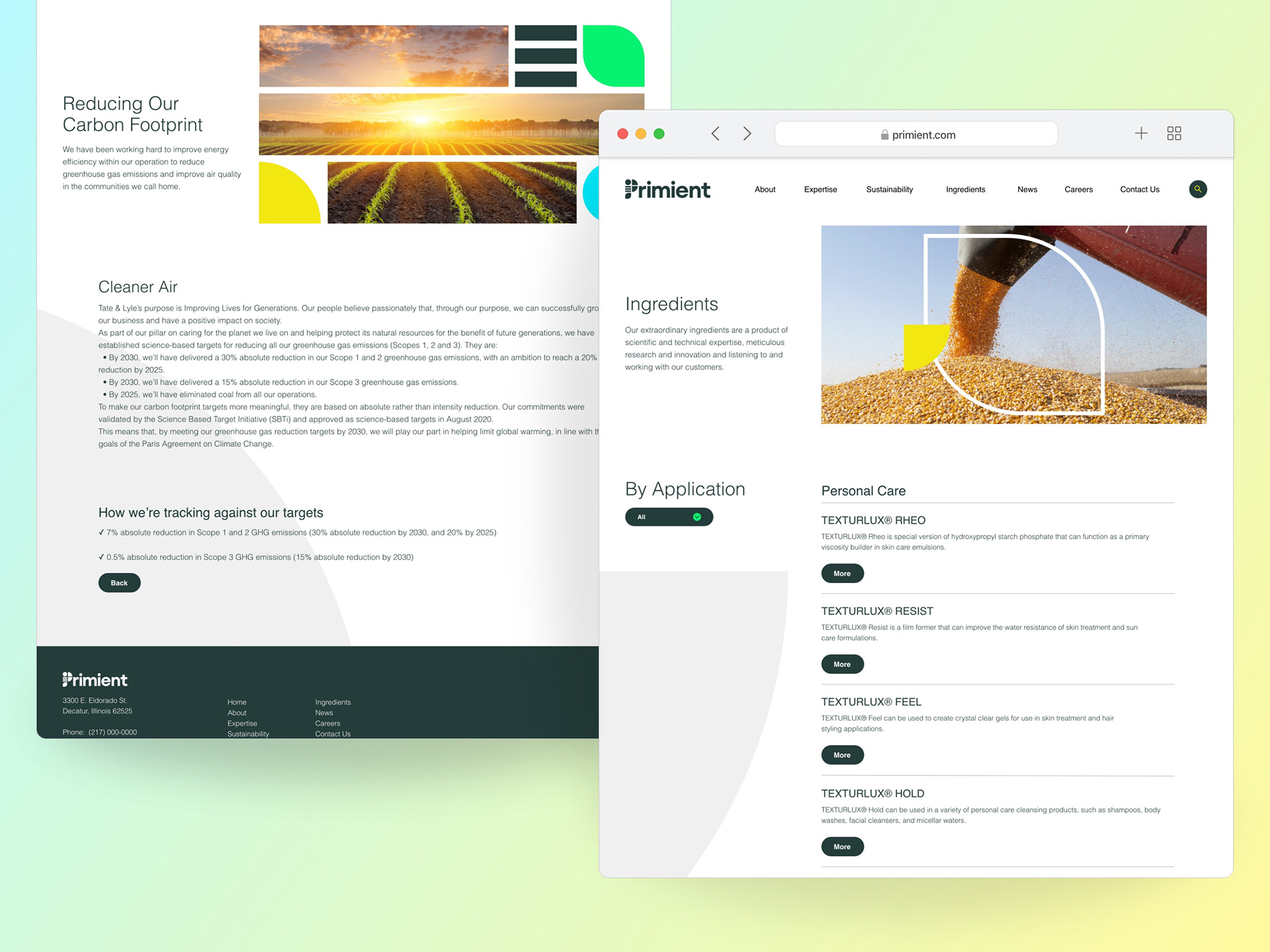 Primient is a new agribusiness entity of Tate & Lyle. I was asked to create a clean and modern layout integrating their newly completed branding package.